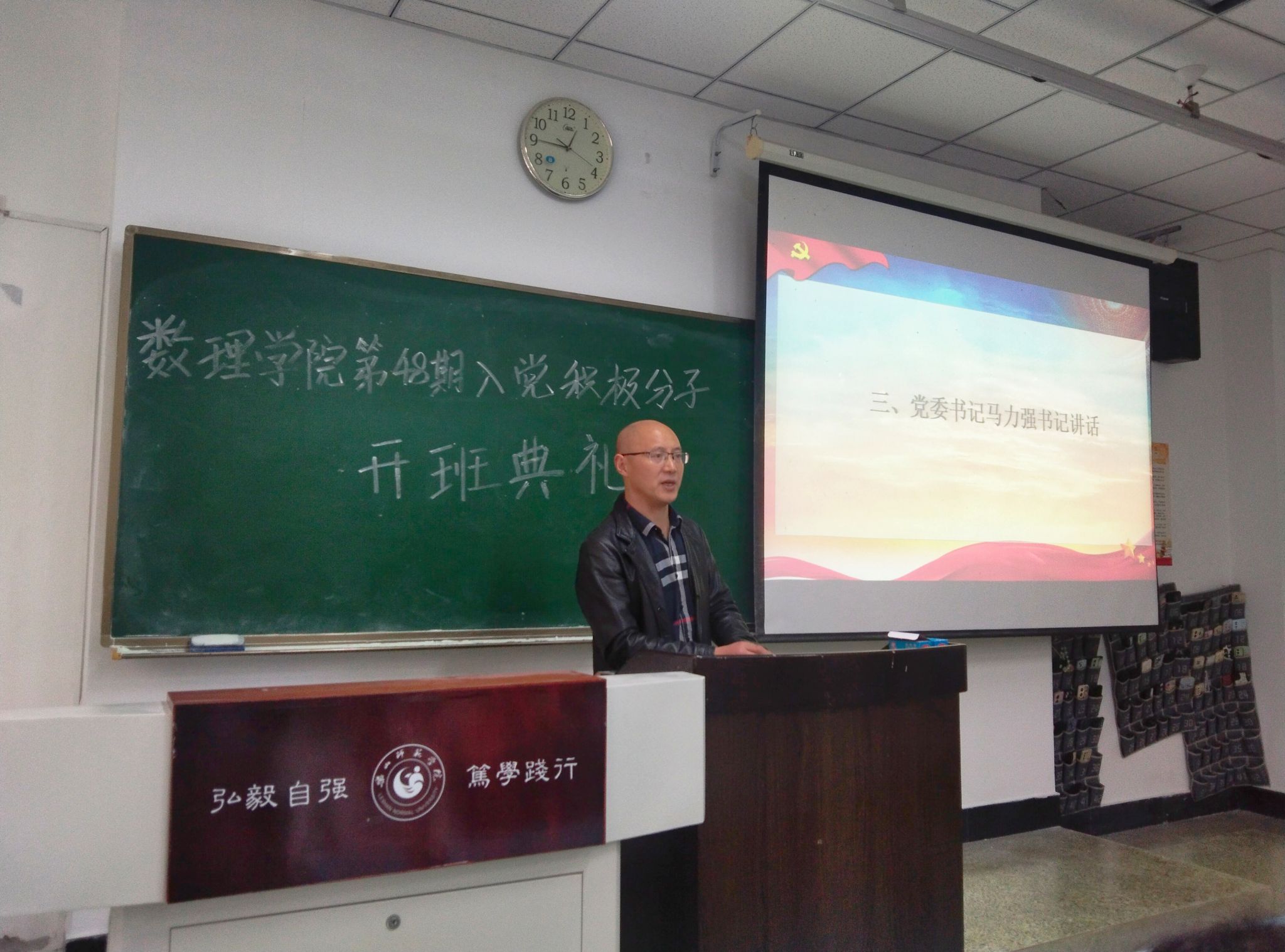 本网讯(文/杜佳兴 图/申莹)10月16日,数理学院在行知楼112教室举行第48期入党积极分子党校开班典礼。出席本次开班典礼的有数理学院党委书记马力强、党委副书记左莉、辅导员陈新凯、学生党员代表以及第48期全体入党积极分子。