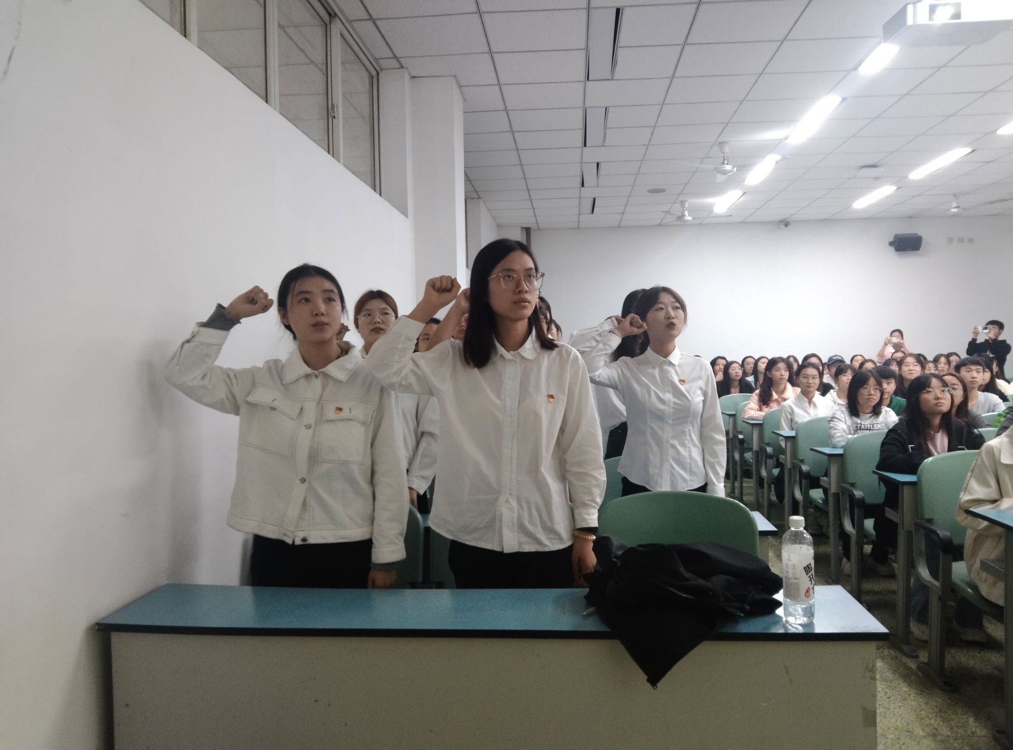 开班典礼在《没有共产党就没有新中国》的歌声中拉开帷幕。紧接着上学期新发展的19名预备党员进行了入党宣誓仪式。典礼上,马力强对新一批入党积极分子提出三点要求:一是要深入学习贯彻党的二十大精神,认真学习习近平新时代中国特色社会主义思想;二是要有实践精神,在实践中强化学习;三是党校学习结束以后,要坚持学习,要学会自主学习,不能放松学习。学生党员黄鑫雨同学作为新发展党员代表发言,她分享了自己如何通过一步步努力顺利入党的心路历程,并为本期党校学员提出了几点建议:一是需要同学们进一步端正入党动机,加强思想建设;二是要遵守纪律,严格要求自己;三是要加强学习,做到学无止境。本期党校学员代表张颖慧同学在发言中,号召大家不断加强对党的理论知识学习,不断增强党性修养和政治素养,并时刻以党员标准严格要求自己、鞭策自己,像革命先辈和优秀党员学习,积极参加党组织活动,以实际行动争取早日入党。