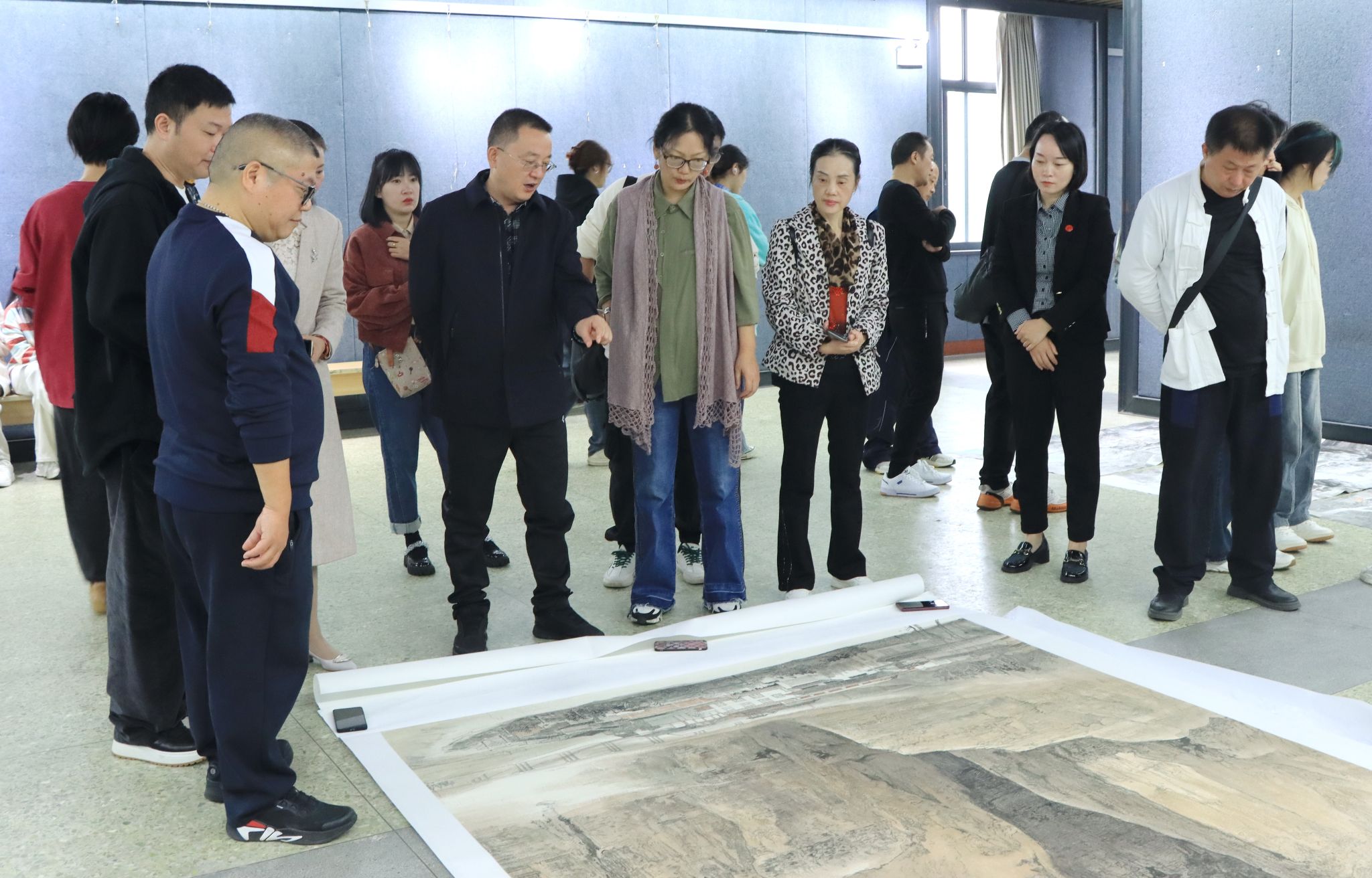 本网讯(文/熊火花 图/门涛)10月17日上午9点,在我校北校区实训楼四楼美术馆,美术与设计学院承办了“四川省美术家协会2023年备战第十四届全国美展美术创作看稿培训会”。参加看稿会的专家有四川省美协主席梁时民,副主席张跃进、武海成,展览部主任黄芸芸,油画家何冠霖,雕塑家印洪,美术与设计学院原院长熊泽文,书记王孝琴,院长熊火花,乐山市美术家协会主席李开能,副主席刘栋,秘书长李拥军,雅安、眉山、凉山、甘孜、阿坝、攀枝花等市州美协主席带队并组织作品,组团前来乐山参加看稿培训活动,美术与设计学院部分师生携作品参加看稿会。看稿会由乐山市美术家协会主席、我院教授李开能主持。