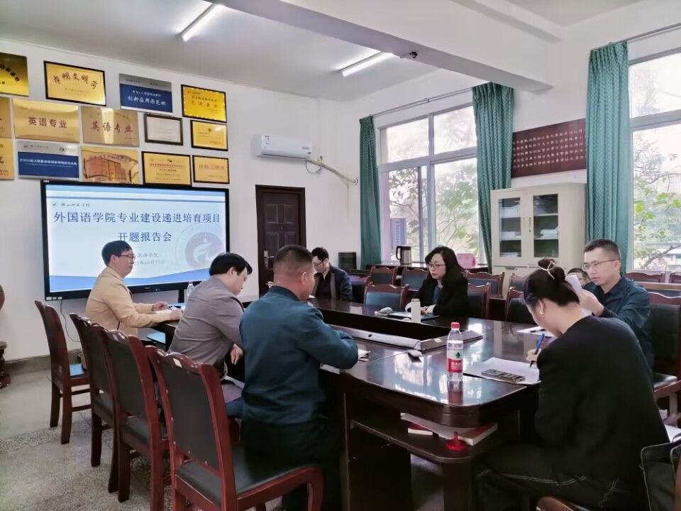 本网讯(文图/景爱民)10月19日下午,外国语学院在三楼党政办公室举行了专业建设递进培育项目开题报告会,报告会评委由学院院长江世勇、副院长徐波和廖百秋博士担任,学院英语、翻译、商务英语、日语和法语五个专业的负责人进行了开题陈述。