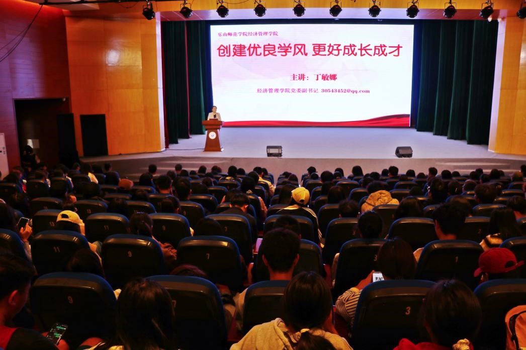 本网讯(文/陈果、黄碧莹、王烜垚 图/李佳伟、洛亚)经济管理学院于10月22日在多功能厅召开学风建设大会,经济管理学院党委副书记丁敏娜、分团委书记王东健、辅导员陈聪、金蓉以及各年级学生干部、入党积极分子、团学干部参加了本次大会。本次会议由王东健主持。