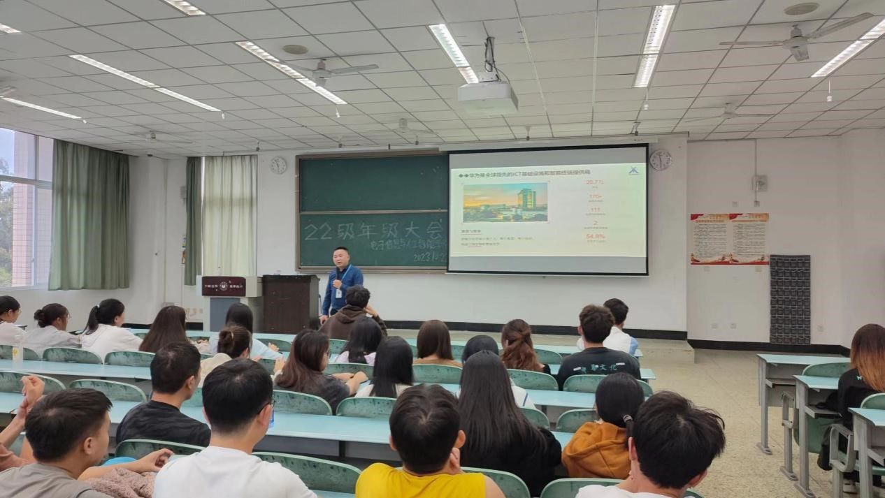 最后,华为ICT大赛及华为认证宣讲老师给同学们分享华为的奋斗历程、被美国打压并崛起的精彩故事以及各领域不断突破和创新的高科技产品。