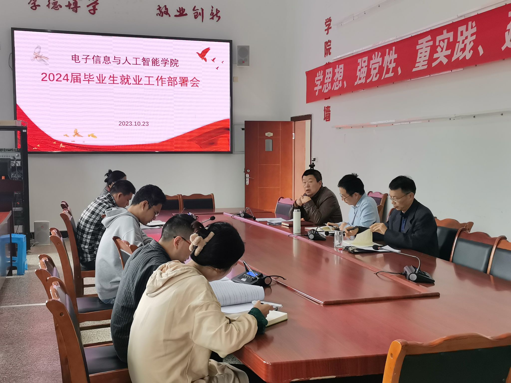 本网讯(文、图/雷雄锴)10月23日,为深入开展毕业生就业工作,电子信息与人工智能学院召开了毕业生就业工作总结部署会。出席会议的有学院党委书记蒋强、院长金澎、学院党委副书记方忠以及学院党委委员、学科负责人、20级毕业生班主任等。