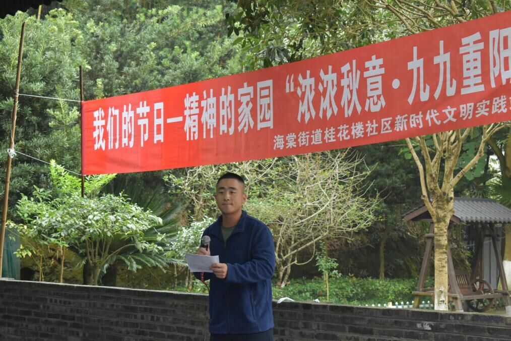 本网讯(文/王梦琳吕思成 图/郑道恩)为丰富社区退休老人精神文化生活,欢度重阳佳节。10月24日,马克思主义学院青志中心联合海棠街道桂花楼社区于乐山大福庄园共同开展“浓浓秋意,九九重阳”主题志愿活动,用行动给老人送去温暖,用大爱为老人带去欢乐和幸福。本次活动由缪易航主持,青志中心志愿者参与,桂花楼社区罗主任出席本次活动。