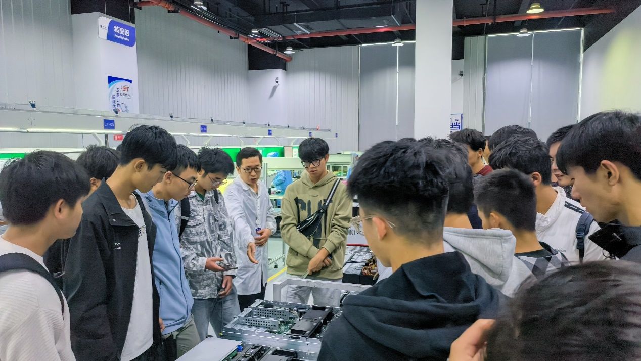 为了确保见习活动的顺利进行,各班在见习期间都配备了相应的导师并全程跟踪学生的见习情况。在各位导师的带领之下,同学们来到了一楼装配组生产车间。技术人员向同学们介绍了宝德公司的基本情况以及信创的含义。同学们在技术人员的带领下参观了一台计算机在生产线上的组装、测试、包装等几个流程。紧接着,同学们来到了二楼的IQC来料检验室进行参观,技术人员向同学们详细地展示了如何对CPU、显卡等进行性能测验。