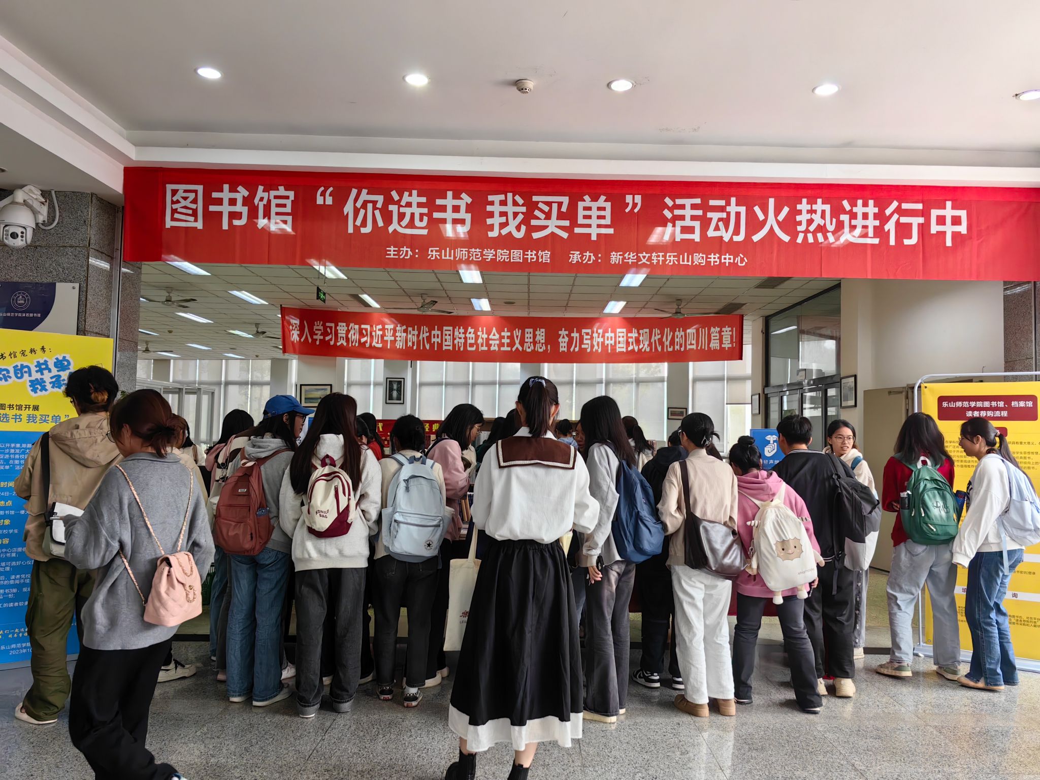 活动联合了新华文轩乐山购书中心,采用了“图书馆+书店”的合作模式,展出了一千多本精挑细选的文学类、文教类、社科类、科技类等多类别畅销新书,为师生读者打造了一个书香浓厚的“迷你书屋”。读者们在几平米的书屋里徘徊,在一片无边的书海中徜徉。他们选好书后,将书交给现场工作人员加盖馆藏章、粘贴索书号,最后在自助借还机上完成借阅,体会到了别样的空间体验和选书体验。同时,除了这次的现场活动外,图书馆也对线上长期进行的“读者荐购”栏目进行了宣传。三天时间倏忽而过,读者们仍然可以通过线上的荐购平台随时推荐想要阅读的好书,采访馆员们严格审核后将其列入馆藏订单。