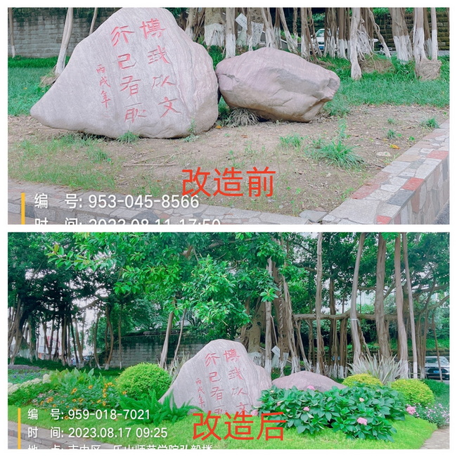 本网讯(文/徐宁漫 图/李博)为美化校园,营造良好的育人环境,自2023年7月1日起,后勤保障服务部校园绿化中心根据以人为本、因地制宜、生态美观的原则,在校园进行了局部景观改造。