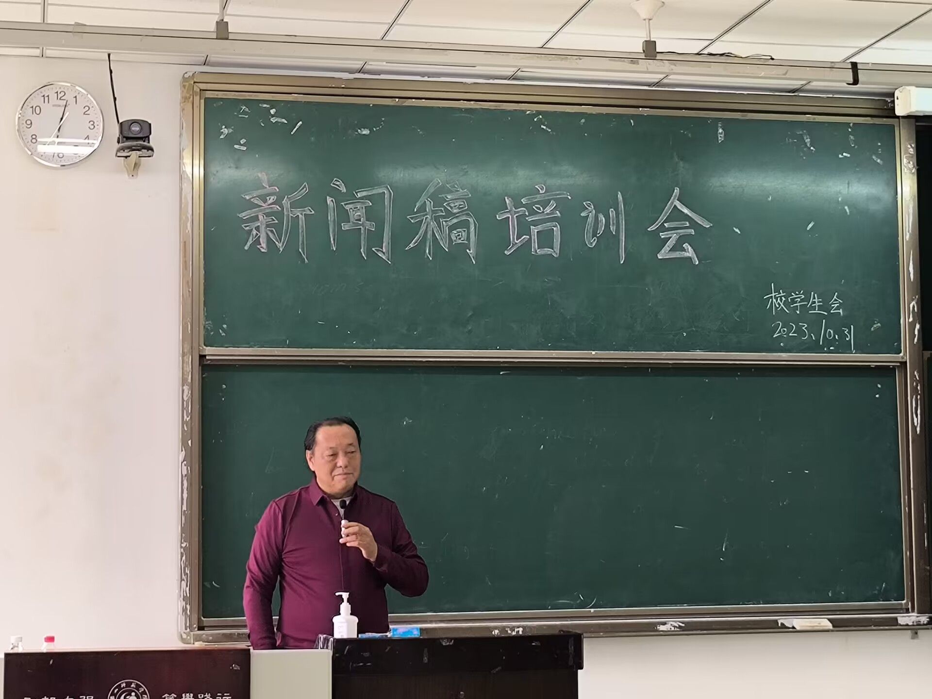 本网讯(文/周奕菲 图/段苏恬、于子轩)为进一步加强学生会综合能力发展,切实提升我校学生会全体成员的公文写作水平,我校学生会于10月31日中午在行知楼201室举行了第一次新闻稿培训会。本次培训会由各个部门的学生干部参与,特邀我校文新学院退休教授李康云老师授课。