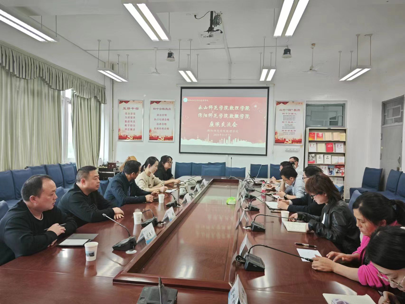 本网讯(文/杨建会 图/刘高峰)11月7日,数理学院院长屈小兵一行5人赴绵阳师范学院数理学院开展工作交流。绵阳师范学院数理学院党委书记张学林、院长陈擘威等领导班子成员以及物理学专业负责人、实验室主任、部分教师代表参加了座谈交流。