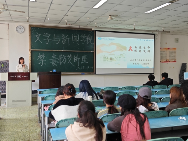 本网讯(文、图/黎柏伶)为增强我院新生对毒品、艾滋病危害的认识,增强防范意识,11月10日中午,文学与新闻学院在行知楼125教室举行了“禁毒防艾”知识讲座。本次讲座特邀请了乐山市人民医院感染科主治医师李佳萌亲临讲授。文新学院2023级辅导员及全体新同学参加了本次学习活动。