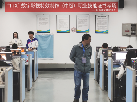 “1+X”数字影视特效制作(中级)职业技能证书考试,主要由教研室主任马彧廷、教师龚娟娟和李兴成负责巡考、监考,考试时间为2023年10月27日下午13点45分至17点30分,在弘毅楼608机房完成考试,考试过程非常顺利,同学们严守国家考试纪律,无任何异常情况发生。
