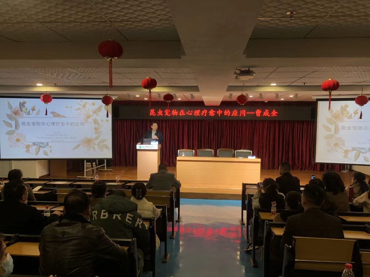 本网讯(文、图/童超)11月30日,生命科学学院曹成全教授受乐山市精神卫生中心邀请,在2023年心身障碍规范化诊疗培训班上做题为《昆虫宠物在心理疗愈中的应用》的报告,生命科学学院和特殊教育学院、康复学院共计十余名师生同行参会。